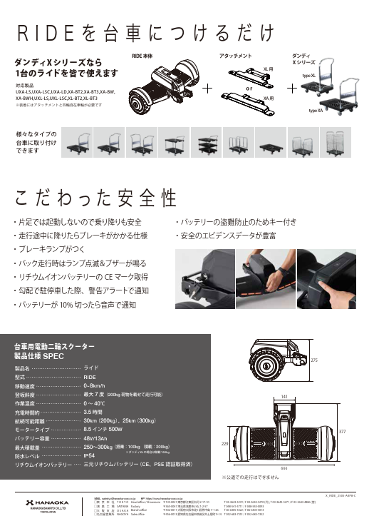RIDEは、花岡車輌の台車(ダンディXシリーズ)に取り付けて使用する、
