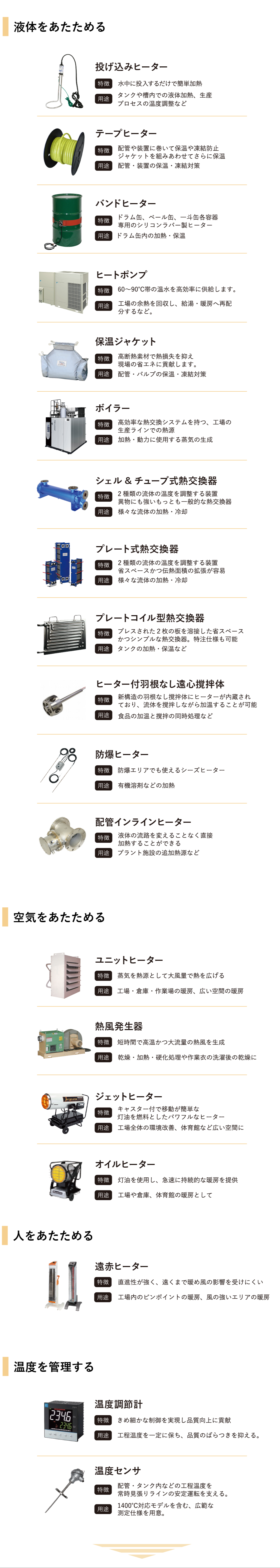 製造現場における液体・気体の温度管理に関する各種商材を取り扱っています。