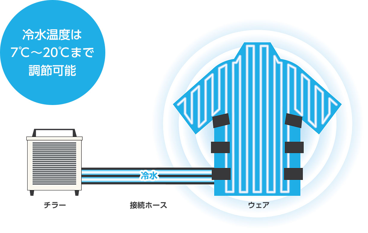 20m先でも1m/s以上の風速を確保する大風量設計。広い現場でも効率的な冷却が可能な空調機です。