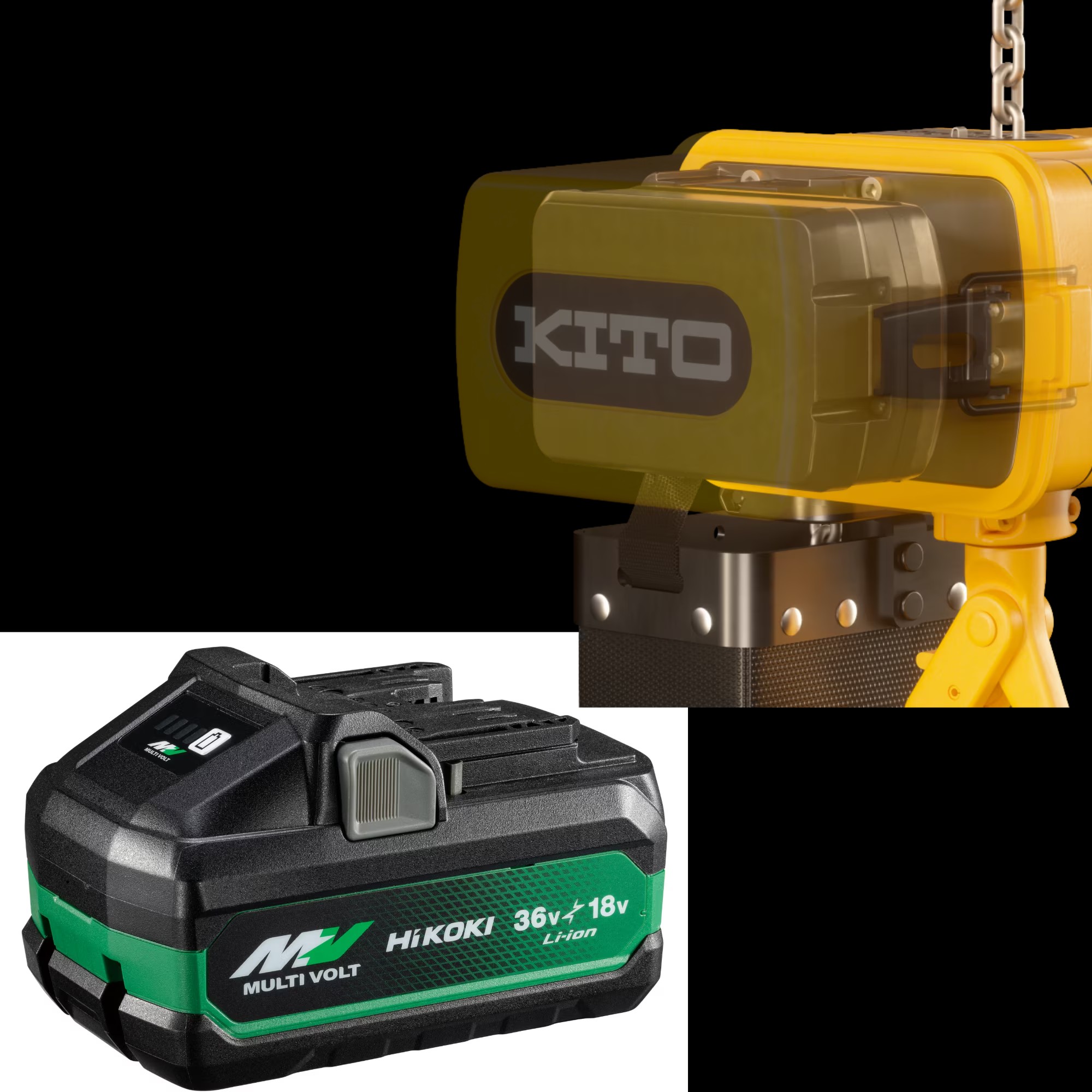 キトーのコードレスEMは、こうした課題を解決するバッテリー駆動式の電気チェーンブロックです。